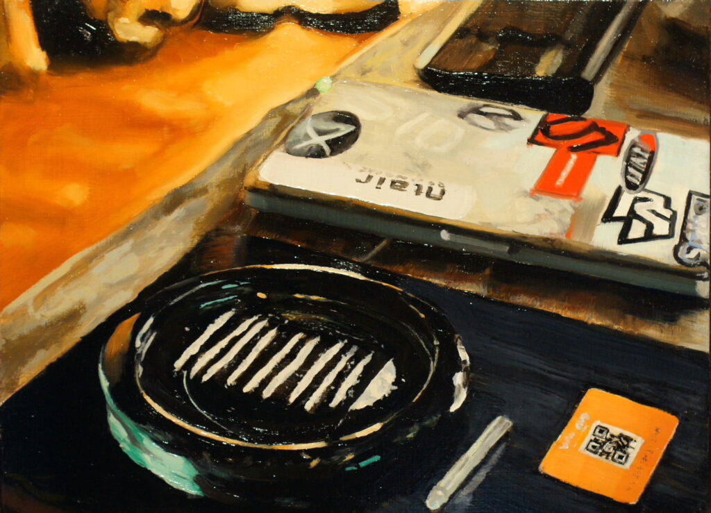 #4. $. This was my fourth oil painting and my second attempt at a still-life – My first being a cactus garden that didn’t quite work out because the light was changing fast…In the end I had to rely on my reference photos to finish this painting as the lines were disappearing too quickly!……Ok-Ok, hold on a minute! – Before you judge me! – Yes!…I have had experiences with drugs! – Not all of them! – And not all the time!……Who hasn’t?! – Think about it!…Lets be honest!…Alcohol?, Tobacco?, Opioids?, Sugar?!! – From politicians to golfing retirees to policemen to food-fatties!……Practically everyone I know!…The compounds I mentioned above, are all drugs! – They all cause a change to your physiology or psychology!…And they are all addictive!…It becomes only a question of legality. It is undeniable that even some illegal drugs have their positive uses in society…… I mean forget about the dangerous synthetic designer drugs!-(There are quite a few now that are of real concern! -And this is another topic of discussion entirely. Drugs will always be used and abused in society and we should allow people the relative safety of sticking with the ‘devil we know’ rather then being forced to use drugs that have been tweaked and re-tweaked with to allow temporary ‘legal’ sales) – However, here, I’m talking about drugs that come from nature…MDMA, LSD, psilocybin, DMT, Ayahuasca, cocaine, and marijuana- As well as their specific known health benefiting applications and their mind expanding properties, some drugs can help people to feel secure and come to terms with traumatic experiences or the prospect of facing death!.. certain drugs can make you more empathetic, loving and understanding towards other people! – Other drugs still, can help to put you in the creative flow!…Dropping acid has definitely helped me to see color more cleanly!…And who doesn’t agree that food tastes better when you are stoned?!…The potential benefits are in my opinion of more use and value to our society than the harm they pose to individual health…..Once, I had to write a speech for one of my best friends wedding……I was stressing about it for 9 months because I wanted to do better than just a good job!……One quiet evening and a couple grams of ‘la-di-dar’……Then suddenly, I could think clearly and formulate my words better!…The words just came flowing out! – A 10 page draft in under 3 hours…And it was the best shit I’ve ever written! -The reaction from the women at the wedding was fantastic!…I’m certain that If I wasn’t married I could have gotten laid that day because of that speech!…..Nah! – Seriously!…Think about it people!…If you were to take away all the drugs in our collective human history, you would be taking away all the great songs, writings and works of art of our time!…In fact, I would go as far as saying that the use of drugs throughout the ages have helped humans expand the mind and shape mankind into what it is today – A more open-minded, tolerant and caring society!…Isn’t that a far cry and a more positive step away from the repression and brutality of the past!?……I think I can safely say that drugs actually saved my life!….I’m so looking forward to painting my DMT experience!